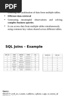 T he SQL J oins clause is used to combine records from two or more tables in a database. A JOIN is a means for combining fields from two tables by using values common to each. Consider the following two tables, (a) CUST OMERS table is as follows: