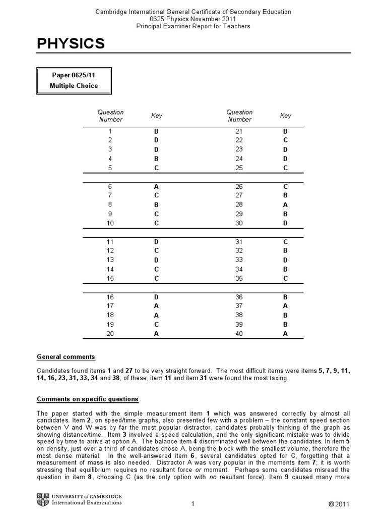 Physics: Paper 0625/11 Multiple Choice