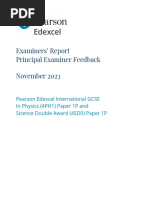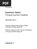 Key message It is assumed that, as far as is possible, the IGCSE course will be taught so that candidates undertake regular practical work as an integral part of their study of physics. This examination should not be seen as suggesting that the course can be fully and effectively taught without practical work. General comments The aim of the examination is to enable candidates to display their knowledge and understanding of practical physics techniques. These include: graph plotting, tabulation of readings, manipulation of data to obtain results, drawing conclusions, dealing with possible sources or error, control of variables, accurate measurements, choice of the most effective way to use the equipment provided.