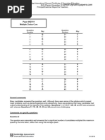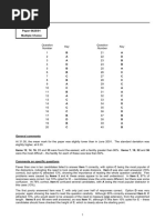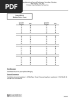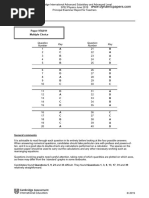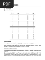 General comments Items 1, 4, 6, 9, 10, 11, 15, 17, 19, 26, 28, 29, 30 and 39 were found to be the most easy by the candidates. above. Only three items were found particularly challengbing; these were items 13 (particularly badly answered), item 18 and item 32. Comments on specific questions Item 1 involved a speed calculation, and caused little difficulty. This was also true for item 2 on speed/time graphs. In different guises, item 3 is very common on this paper, and was generally well answered, with distractor C being particularly effective. With a high facility, the simple measurement item 4 represented very little challenge, but item 5 lead a significant number of candidates to opt for distractor A, believing that the measured length was plotted on the y-axis, despite the fact that the graph line started at zero. Item 6 concerned resultant force, and this was clearly well understood, although some did choose C (as the only option with no resultant force). Many candidates lost a mark in item 7 because they could not recall that the work done by a force depends on the distance moved in the direction in which the force acts. Distractor A was popular in the moments item 8, and it is worth stressing that equilibrium requires no resultant force or