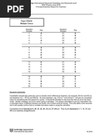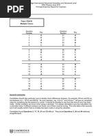 Cambridge International General Certificate of Secondary Education 0625 Physics November 2011 Principal Examiner Report for Teachers force or moment. Almost one in three lost a mark in item 10 because they could not recall that the work done by a force depends on the distance moved in the direction in which the force acts. Item 11 showed 34% of candidates choosing D, as the only graph with a negative gradient. Item 12 showed widespread confusion over the use of a manometer, a large proportion of candidates not noticing the 20 cm difference in water levels and consequently opting for C. Item 13 on pressure caused by a solid was much better understood, as was the straightforward recall item 14. All distractors worked well in item 15. Items 16 and 17, on evaporation and convection respectively, caused few problems. Although a great majority of candidates realised that item 18 concerned thermal capacity, more than a quarter chose B, not understanding that a higher thermal capacity is associated with a smaller temperature rise. The reflection item 19 was well answered. In item 20 on refraction, it was distractor C which was popular; candidates need to be reminded to look carefully at which material a ray of light is leaving, and which it is entering. Diffraction was recognised by most in item 21, with refraction being the popular distractor. A stronger performance was shown in item 22 which required recall of wave types. Item 23 is similar to several previous waves questions, and produced very close to its target facility. However item 24, despite being very common on this paper in different guises, was not well answered; the experiment to measure the speed of sound would be worth teaching in some detail. Electrical units were very well known in item 25. Item 26 on resistance also produced many correct answers, as did item 27 on circuits. In item 28 nearly half the candidates opted for B, misunderstanding the potential difference variation across each lamp. Item 29 concerned a circuit, and one in four candidates believed that moving the lamp to position P before the resistor would increase the current in it; this seems to show a basic misunderstanding of the nature of current and a belief that it is used up in a circuit. The physics principles behind a fuse and a relay were well known in item 30, and items 31 (77%) and 32 (84%) on magnetism were similarly tackled well. The pattern and direction of the magnetic field lines around a straight wire in item 33 lead a quarter of candidates to choose B, probably failing to notice the direction of the current. In item 34, the basic materials used in a transformer were not as well known as expected. Item 35 on the a.c. generator needed some thought and was generally well answered, distractor A being the most popular. Although negative statements are avoided in this paper wherever possible, candidates should be advised that they may be used occasionally; this was the case in item 36 and may have caused distractor D to be particularly popular. Item 37 on atomic structure and item 38 on half-life caused far fewer problems. The next item 39 involved recall, and many chose A, confusing electromagnetic induction with thermionic emission. In item 40, all three distractors were effective.