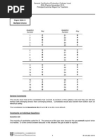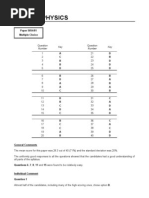 Key Messages Some areas of the syllabus were better known than others; in particular cathode-ray tubes were not well understood. Whilst candidates had no problems with single step calculations, many got lost when trying to work through more complex questions involving several stages, and would benefit from having more practice at solving these types of problem. The majority of candidates indicated, by their knowledge and skills, that they were correctly entered for this Extended Theory paper. However, a significant minority of candidates found the subject matter and level of some questions so difficult that these questions were inaccessible to them and they would have been better entered for the Core paper. General Comments Varying types of question brought varying qualities of answer. Almost all candidates coped easily with calculations which required recall of a formula, the substitution of numbers and the ensuing work with a calculator. Unfortunately, when numerical questions demanded a step-by-step development, many candidates did not get beyond the early stages. There were three examples of this type of question in this paper. Other questions required verbal responses of varying degrees of difficulty. The simplest of these required recall of learnt material and many candidates fell short in this area, omitting significant words or detail. The harder questions of this type are those which require the application of recalled material to unfamiliar situations. Only the most able candidates are expected to succeed with all of these, but it is creditable that in many cases apparently weaker candidates unexpectedly produced answers of good quality to such questions, boosting their overall performance accordingly. Comments on Specific Questions Question 1 (a) Any statement equivalent to change of velocity or change of speed per unit time was acceptable, either stated in words or using explained symbols. Statements such as velocity or speed divided by time were not rewarded. A good proportion of candidates were successful. (i) (ii) The correct numerical answer was very frequently given. Partial credit was awarded if a wrong value was calculated but it was clear that an area under the graph was being used. The first requirement was to calculate the time of 50 s during which acceleration took place. Many candidates who had been unsuccessful in (a) nevertheless found this time correctly. It was not unusual for candidates to use the time of 50 s in their subsequent graphs without showing its calculation. This was entirely acceptable. A majority of candidates gained full credit for their graphs.