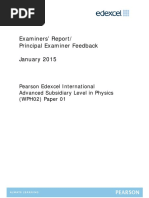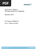 Key messages Candidates are advised to read carefully through their responses to make sure that what they have written has the intended sense. Concise explanations are often the best. When performing calculations, the best candidates always show their full working. It is good practice to first write the full equation, then rearrange if necessary, rewrite with correct numerical substitutions, before finally evaluating. Candidates who work in this way rarely make errors, and when they do they can usually be awarded partial credit. Calculators are always allowed for this paper, but candidates must make sure that they understand how to use them properly. General comments Although there were a small number of candidates scoring comparatively low marks on this paper, the overwhelming majority produced convincing and accurate answers to the nearly all the questions. It was clear that the majority of candidates were well prepared to face this examination and were sufficiently well acquainted with the subject to produce answers that were either largely accurate or at the very least showed a decent understanding of what was being tested and asked for. Inevitably some questions proved more straightforward than others and from time to time a candidate who had performed well on the more challenging questions made unfortunate errors in questions that other candidates found less testing. The total range of marks that candidates scored on this paper did extend from very high indeed to the very low but far more candidates did well than the reverse. The most able candidates scored very high marks indeed and sometimes the marks that were lost were for making careless errors or even for writing down the opposite of what was intended or for contradicting what has just been written it is easy to write scalars have a direction whereas scalars do not and to lose a mark. Very commonly, the very few candidates who scored the lowest marks had left a significant number of questions unanswered. There were almost no language issues with the candidates and even when the answer offered was not completely correct, it was almost universally the case that the question had been understood and the meaning of the answer was clear. The examination techniques of the candidates are to be commended with very few lost marks caused by units or working out omitted. Although neither a serious nor a widespread problem, there were rather more marks lost due to inaccurate rounding of significant figures. For example the answer to 11(c)(ii) can be expressed as 17 000, 17 200 or 17 190 years but not as 17 100 years even though 1, 7 and 1 are the first three figures that appear on the calculator screen. The format of the examination is clear and candidates understand that an answer should be written in the dedicated space on the paper. There is always enough space to write or draw the expected answer even for those candidates whose writing is larger than average. It can, however, be necessary on occasion, to cross out an answer and to replace it elsewhere on the paper at the bottom of the page or on a blank sheet. When this is done, candidates are advised to make a simple reference to the location of the new answer in the original answer space. This is a paper where all of the questions are compulsory and candidates did not seem to find any difficulty in completing it in the allocated time.
