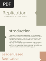 characteristics of data replication. These characteristics include data loss following a node failure, 2 data collisions, and application performance if synchronous replication is being used. Many replication engines have replication latency measured as subseconds. Others require many seconds or more to propagate changes. There are many causes of replication latency, including: The number of disk queuing points in the replication path. Buffering delays at the communication channel as changes are batched to improve communication efficiency. The speed of the communication channel. Whether the processes that follow the tail of a disk queue are event-driven or use polling. If disk-reading processes are poll-driven, what is their polling interval. The delay required to reserialize commits to guarantee referential integrity.