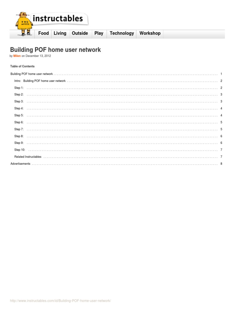 by Milen on December 13, 2012 Table of Contents Building POF home user network . . . . . . . . . . . . . . . . . . . . . . . . . . . . . . . . . . . . . . . . . . . . . . . . . . . . . . . . . . . . . . . . . . . . . . . . . . . . . . . . . . . . . . . . . . . . . . . . . . Intro: Building POF home user network . . . . . . . . . . . . . . . . . . . . . . . . . . . . . . . . . . . . . . . . . . . . . . . . . . . . . . . . . . . . . . . . . . . . . . . . . . . . . . . . . . . . . . . . . . Step 1: Step 2: Step 3: Step 4: Step 5: Step 6: Step 7: Step 8: Step 9: Step 10: .................................................................................................................. .................................................................................................................. .................................................................................................................. .................................................................................................................. .................................................................................................................. .................................................................................................................. .................................................................................................................. .................................................................................................................. .................................................................................................................. ................................................................................................................. 1 2 2 3 3 4 4 5 5 6 6 7 7 8