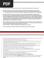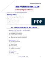 ADVANCED OPTIONS PARAMETERIZATION / DATA DRIVEN TEST Introduction to parameterization Creating a Parameterized script(Data Driven Test) Working on different methods of Data Table object Working on different way of parameterizing an object in QTP Importing data from .xls, .txt files, CSV files & Database files FILE OPERATIONS IN QTP Working with file system object Reading from, Writing to external files like Text files, Excel files Working with XMLUTIL Object Performing various operations on XML files using QTP Descriptive programming & Description object, Static & dynamic desc programming Working with regular expressions Exception Handling/Recovery scenario Manager Smart Identifications, Configuration of object Identification Database connection using ADODB objects VB Scripting language WORKSHOP ON PROJECT AUTOMATION FRAME WORK FOR THE QTP(KEYWORK, HYBRID ETC.) INTEGRATION WITH QC & WINRUNNER DISCUSSION ON RESUME PREPARATION FAQS AND TIPS AND GUIDLINES BY AN AUTOMATION LEAD GUIDANCE FOR HP QTP & QC CERTIFICATION