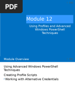 This module explains how to write scripts that perform specific tasks, such as searching files for particular text and modifying all matching files, or searching the event logs for events that match specific criteria. It also describes how to access data stores, the file store, the registry, certificate stores, and other stores, use wildcards and regular expressions, and import and export aliases and objects.