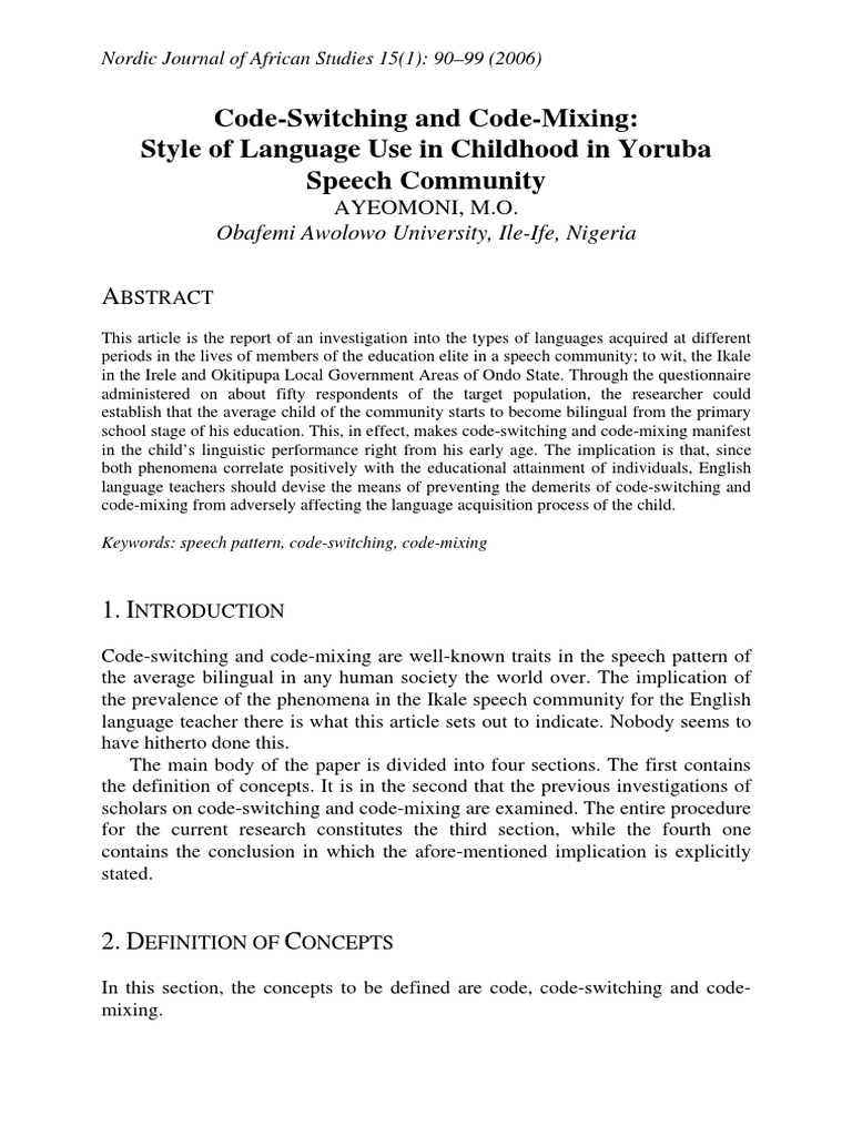 Code-Switching and Code-Mixing: Style of Language Use in Childhood in Yoruba Speech Community