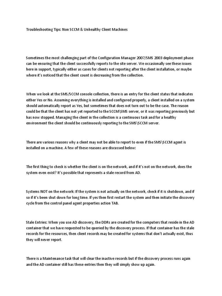 There are various reasons why a client may not be able to report to even if the SMS\SCCM agent is installed on a machine. A few of these reasons are discussed below: