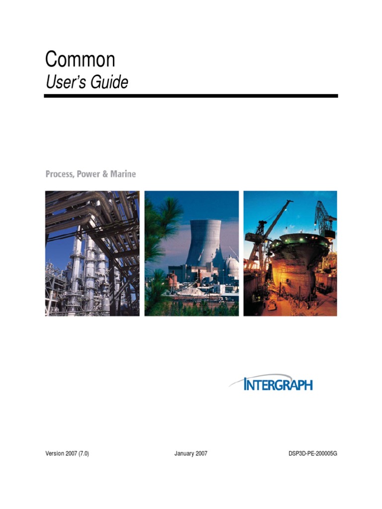 Catalog User's Guide - Provides information about viewing, editing, and creating reference data and select lists (codelists). Common User's Guide - Provides information about defining workspaces, navigating in the model, precision input, filtering, manipulating views, and running reports. Drawings and Reports User's Guide - Provides information about creating drawing and report deliverables. Electrical User's Guide - Provides information about routing electrical cable, cableway, cable tray, and conduit. Equipment and Furnishings User's Guide - Provides information about placing equipment. Grids User's Guide - Provides instructions for creating coordinate systems, elevation grid planes, vertical grid planes, radial cylinders, radial planes, grid arcs, and grid lines. Hangers and Supports User's Guide - Provides instructions on placing piping, duct, cableway, and conduit supports in the model. HVAC User's Guide - Provides instructions for routing HVAC duct. Piping User's Guide - Provides instructions for routing pipe and placing valves, taps, and pipe joints. Space Management User's Guide - Provides instructions for placing volumes (such as drawing volumes, obstruction zones) in the model. Common Users Guide 17