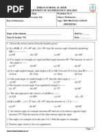 Silver IP 7. If the measures, in degrees, of the three angles of a triangle are x, x + 10, and 2x 6, classify the triangle based on its angles. 8. In ABC, the measure of B is 21 less than four times the measure of A, and the measure of C is 3 more than five times the measure of A. Find the measure, in degrees, of each angle of ABC.