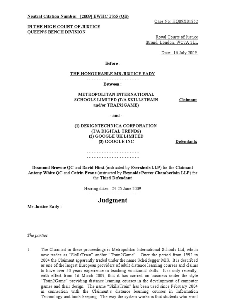 8. The Second Defendant does not operate the Google search engines, as was explained