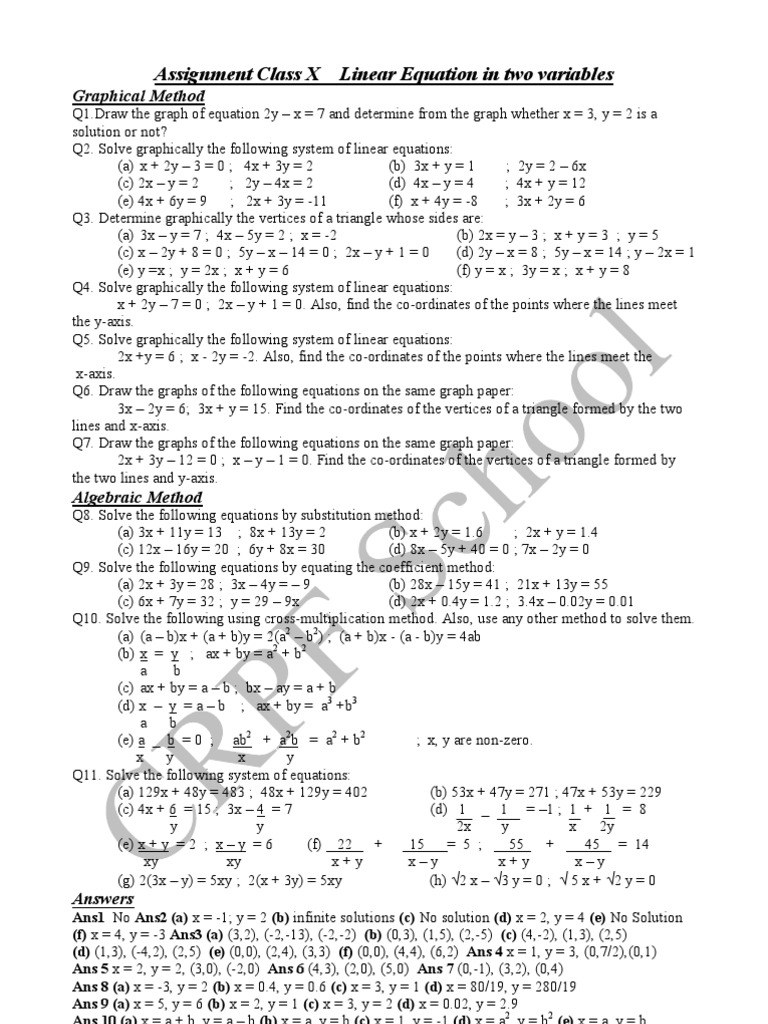 (f) x = 4, y = -3 Ans3 (a) (3,2), (-2,-13), (-2,-2) (b) (0,3), (1,5), (2,-5) (c) (4,-2), (1,3), (2,5)