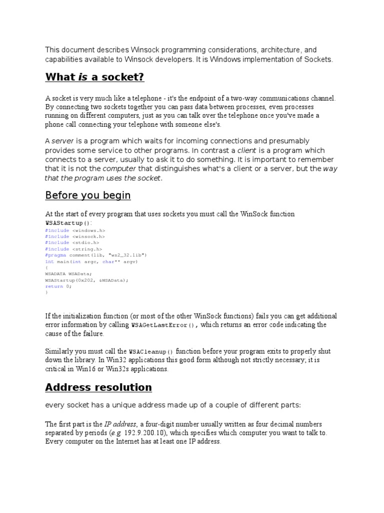 capabilities available to Winsock developers. It is Windows implementation of Sockets.