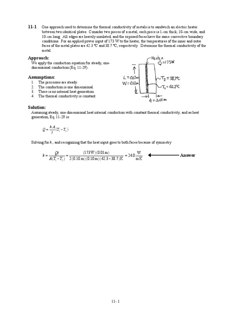 1. 2. 3. 4. The processes are steady. The conduction is one dimensional. There is no internal heat generation. The thermal conductivity is constant.