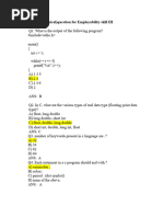 37 Array subscripts in C always start at 38 Maximum number of elements in the array declaration int a[5][8] is 39 Pointers are of 40 A pointer to a pointer in a form of 41 C allows arrays of greater than two dimensions, who will determined this 42 When the main function is called, it is called with the arguments 43 In C, a Union is 44 The continue command cannot be used with 45 A Link is 46 The conversion characters for data input means that the data item is 47 The printf() function retunes which value when an error occurs? 48 Header files in C contain
