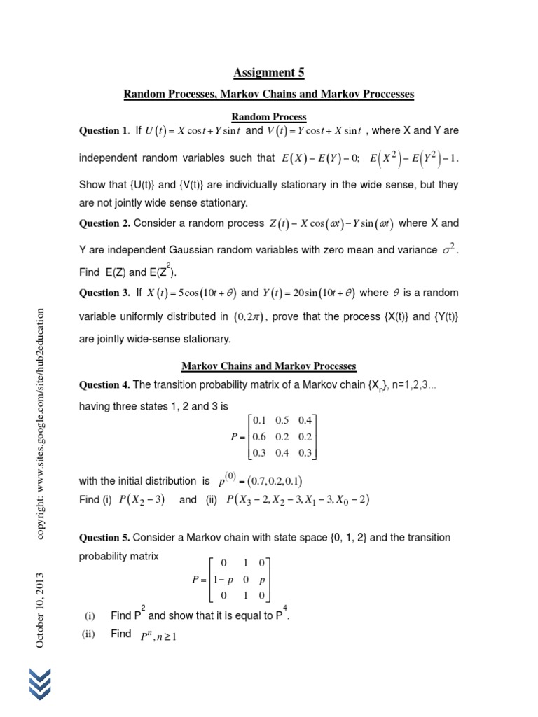 Question 3. If ( ) ( ) 5cos 10 = + X t t u and ( ) ( ) 20sin 10 = + Y t t u where u is a random