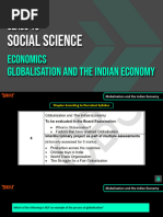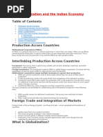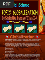 Globalization refers to integrating a country's economy with other countries through free trade and movement of capital and people across borders. It allows countries to efficiently use resources and export surplus production. Multinational corporations play a major role in globalization by jointly setting up production with local companies. Globalization has both benefits like increased foreign investment and employment, as well as issues like widening inequality and lack of benefits for small producers and workers.