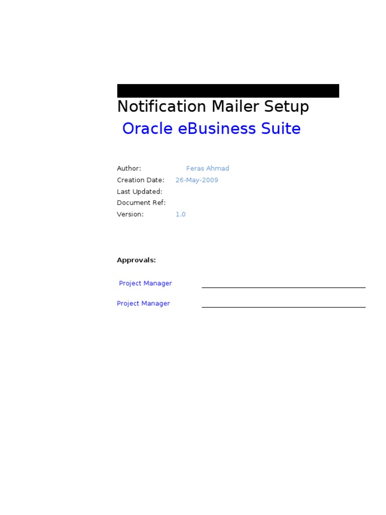 :his document contains notification mailer setup' :his includes testin* of functionality 6ased on 6usiness functions/ ,alidations/ calculations and error handlin*' Pre#Re$uisite for testing: .n order to perform any of the steps in this document/ there has to 6e an .nstance of Oracle Applications $ &2' '+ installed' All the re1uired patches that are identified ha,e to 6e installed successfully'