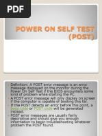 Phoenix (B5)terminate Quiet-Boot(optional) Error Code B6 Compaq (B6)Drive failed(failed to respond). Phoenix (B6)Check password(optional).(Beep)=3-4-2-3 Error Code B7-BD Compaq (B7)CMOS RAM invalid or no fixed drives, exit. Compaq (B8)Fixed drive tests complete. Phoenix (B8)Clear global descriptor table.(Beep)=3-4-3-4 Compaq (B9)Attempt to boot diskette. Phoenix (B9)Prepare boot. Compaq (BA)Attempt to boot fixed drive. Phoenix (BA)Initialize DMI parameters. Compaq (BB)Boot attempt failed(diskette or fixed). Phoenix (BB)Initialize PnP option ROMs. Compaq (BC)Boot record read, jump to boot record. Phoenix (BC)Clear parity checkers.(Beep)=3-4-4-1 Compaq (BD)Drive error, retry booting. Phoenix (BD)Display Multi-Boot menu. Error Code BE Award (BE)Program defaults values into chipset.(BE)Chipset default initialization; Program chipset registers with power on BIOS defaults. Compaq (BE)Weitck CoProcessor test. Phoenix (BE)Clear screen(optional).(Beep)=3-4-4-3 Error Code BF Award (BF)Program the rest of the chipset Award (BF)Chipset initialization; Program chipset registers with setup values. Phoenix (BF)Check virus and backup reminders.(Beep)=3-4-4-4 Error Code C0 Award (C0)Turn off chipset cache; OEM Specific -cache control. Chips & Tech (C0)System board memory failure. Phoenix (C0)Try to boot with INT 19.(Beep)=4-1-1-1 Error Code C1,C2,C3,C4 Award (C1)Memory presence test; OEM specific -test to size on- board memory. Bad SIMM. Chips & Tech (C1)I/O channel activated. Phoenix (C1)Initialize POST Error Manager(PEM). AMI (C2)NMI is Disable. Power on delay start on. Phoenix (C2)Initialize error logging. AMI (C3)Check memory(Cache, Video or first 64K) Award (C3)DRAM Select page, Check BIOS setting and first SIMM, Possible address line failure. Phoenix (C3)Initialize error display function. Award (C4)CMOS conflicts, check video switch, BIOS(Chipset) on the video not initializing. Phoenix (C4)initialize system error handler. Error Code C5 AMI (C5)Power on delay complete. Going to enable ROM i.c. disable Cache if any. Award (C5)Early shadow; OEM Specific -Early shadow enable for fast boot. Phoenix (C5)PnPnd dual CMOS(optional) Error Code C6 AMI (C6)Calculating ROM BIOS checksum. Award (C6)Cache presence test; External cache size detection. (Check Memory first 64K.Check CPU jumper Setting). Also, Check Video memory Phoenix (C6)Initialize notebook docking (optional). Error Code C7 AMI (C7)ROM BIOS checksum passed. CMOS shutdown register test to be done next. Award (C7)Shadow video/system BIOS after memory pass. Phoenix (C7)Initialize notebook docking late. Error Code C8,C9 AMI (C8)CMOS Shutdown register test done. CMOS checksum calculation to be done next. Award (C8)CMOS Shutdown, time delay. Phoenix (C8)Force check(optional) Phoenix (C9)Extended checksum(optional) Error Code CA,CB,CC AMI (CA)CMOS checksum calculation is done, CMOS Drag byte written. CMOS status register about to initializing for Date and Time. Award (CA)Micronics cache initialization. AMI (CB)CMOS status register Init done. Any initialization before keyboard BAT to be done next.