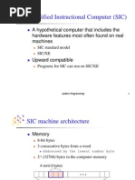 SIC &ro3ide , load and tore in truction )L8%, L8(, ST%, ST(, etc.* . Inte1er arithmetic o&eration F )%88, S>A, $>L, 8IG, etc.*. %ll arithmetic o&eration in3ol3e re1i ter % and a "ord in memory, "ith the re ult /ein1 le!t in the re1i ter. T"o in truction are &ro3ided !or u/routine lin2a1e. CO$B com&are the 3alue in re1i ter % "ith a "ord in memory, thi in truction et a condition code CC to indicate the re ult. There are conditional 0um& in truction F )@LT, @EH, @IT*, the e in truction te t the ettin1 o! CC and 0um& accordin1ly. @S>A 0um& to the u/routine &lacin1 the return addre in re1i ter L, -S>A return /y 0um&in1 to the addre contained in re1i ter L.