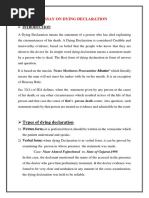 INTROD#CTION$ The maxim Nemo moriturus praesumitur mentire is basis for ''dying declaration'', which means '' a man will not meet his maker with a lie in his mouth'' . A dying de l!"!#i$n is !lled !s %% Le#e"& M$"#e&%%. 'he ($"d %' Leterm Mortem'' &e!ns %' Words said before death'%. Recording of dying declaration is very important task. Utmost care is to be taken while recording a dying declaration. If a dying declaration is