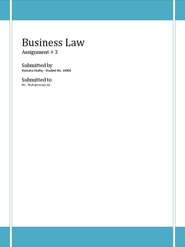Assignment # 3 Humaira Shafiq Student No. 14004 The right of ownership in these instruments can be transferred from one person to another easily. If the instrument is payable to bearer, the property in negotiable instrument is transferred to the transferee by delivery. Rights of Holder A holder of negotiable instrument has a right to recover the money from the person liable on the instrument. The holder can get the amount himself or transfer to another person. Better Title A person taking the negotiable instrument in good faith without negligence and for value trusting it bonafide becomes holder in due course. He gets the instrument free from all defects. Promise or Order A negotiable instrument contains an unconditional promise or order to pay. In case of promissory note the debtor promises to pay a certain sum of money to the holder of the instrument. In case of bill of exchange and cheque the creditor orders his debtor to pay a certain sum of money to the holder of the instruments. Certain Amount In negotiable instruments, the promise or order is made for the payment of certain amount. Presumptions Certain presumptions of law apply to all negotiable instruments such as consideration, date, time of acceptance, stamp and holder in due course. Therefore it is not necessary for the party entitled to receive money on the instrument to prove the validity of his claim. In Writing A negotiable instrument must be in writing. An oral promise or order to pay money cannot be called negotiable instrument.
