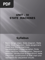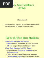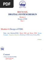 The extension of sequential systems to include input and output capability. Guidelines for the design of finite state machines. The Mealy and Moore machines and their differences. Assigning values to state variables several approaches. Developing the defining equations for a finite state machine. Modeling FSMs using RTL and structural models. Optimizing finite state machines using row reduction and implication charts.