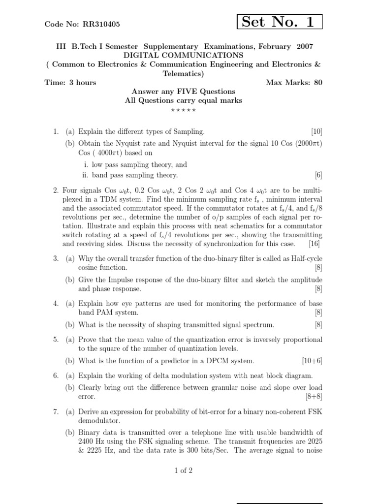 (b) Obtain the Nyquist rate and Nyquist interval for the signal 10 Cos (2000πt)