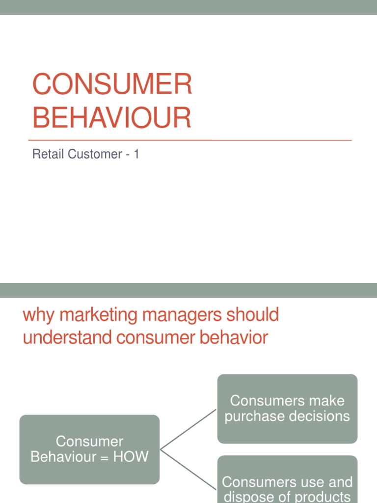 Consumers make purchase decisions Consumer Behaviour = HOW Consumers use and dispose of products