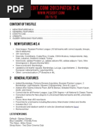 supported platforms: 1. PC only ( not planned any other platform ) features: 1. edit player's - name - abilities - positions - motions - shirt settings - cards - face & hair relink - boots relink 2. edit team - names ( all 20 languages supported ) - numbers - team squads ( transfers via drag&drop ) - formations - strategies - team styles - supporter, kit and radar colours - home stadium relink ( ingame created stadiums supported too ) - emblems relink 3. edit kits - kit slots relink - detailed settings of player's and keeper's kits 4. import/export - players [ CSV ( PES6-2013 ), OF2, .Player files ( PES2011-2013 ) ] - teams [ OF2, .Team files ] - formations [ OF2, CSV ] - kits settings [ .Kit files ] - emblems [ most of graphic files ] 5. global adjustment - abilities - boots - injuries - motions - cards - macro reader ( to generate XML with global changes ) - all with variable options ... 6. leagues and stadiums - names editing ( real or default names by one click ) 7. other - footbal manager [FM] stats conversion - adding of players - quick removing of fake names - global renaming and adjusting size and style of names - and much more ... requirements: - installed .NET Framework (at least version 3.5) how to use: