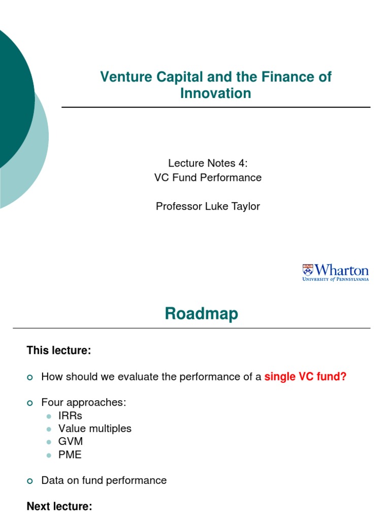 Lecture Notes 4: VC Fund Performance Professor Luke Taylor