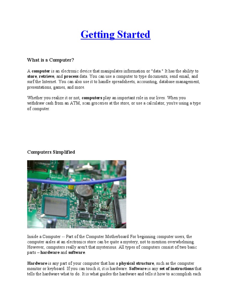 Inside a "omputer ## $art of the "omputer otherboard %or beginning computer users, the computer aisles at an electronics store can be &uite a mystery, not to mention overwhelming. 'owever, computers really aren!t that mysterious. All types of computers consist of two basic parts ( hardware and software. Hardware is any part of your computer that has a physical structure, such as the computer monitor or )eyboard. If you can touch it, it is hardware. Software is any set of instructions that tells the hardware what to do. It is what guides the hardware and tells it how to accomplish each