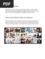 A computer is an electronic device that manipulates information or "data." It has the ability to store, retrieve, and process data. You can use a computer to type documents, send email, and surf the Internet. You can also use it to handle spreadsheets, accounting, database management, presentations, games, and more. Whether you realize it or not, computers play an important role in our lives. When you withdraw cash from an AT , scan groceries at the store, or use a calculator, you!re using a type of computer.