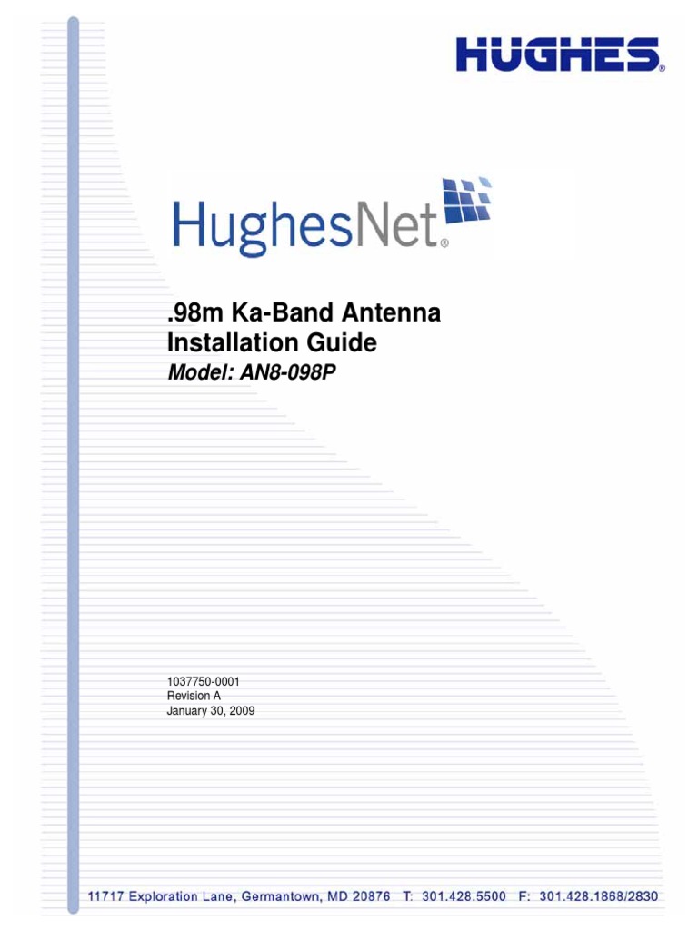 This Installation Guide explains how to assemble and install the Hughes AN8-098P .98m Ka-band antenna. It is written for qualified installers who are familiar with satellite antenna installation practices, and are capable of properly applying the information presented herein. This chapter presents an overview of the AN8-098P antenna, a summary of the steps used to assemble and install the antenna, and supplemental information on tasks related to antenna installation. These topics are included in the following sections: The model AN8-098P antenna on page 1 Antenna installation summary on page 2 Tasks related to antenna installation on page 4