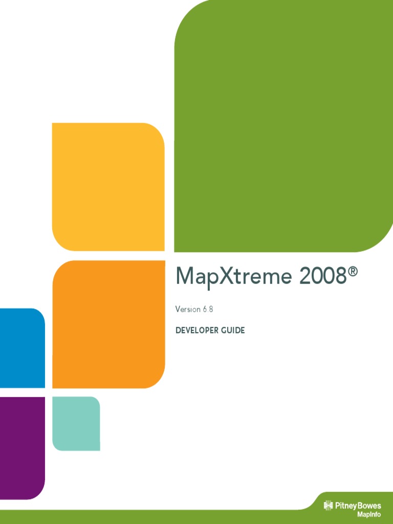 Information in this document is subject to change without notice and does not represent a commitment on the part of the vendor or its representatives. No part of this document may be reproduced or transmitted in any form or by any means, electronic or mechanical, including photocopying, without the written permission of Pitney Bowes MapInfo Corporation, One Global View, Troy, New York 12180-8399. 2008 Pitney Bowes Software Inc. All rights reserved. MapInfo, MapInfo Professional, the MapInfo logo and MapXtreme are trademarks of Pitney Bowes Software Inc. and/or its affiliates. Corporate Headquarters: Phone: 518 285 6000 Fax: 518 285 6070 Sales: 800 327 8627 Government Sales: 800 619 2333 Technical Support: 518 285 7283 www.mapinfo.com Contact information for all Pitney Bowes MapInfo offices is located at: www.mapinfo.com/contactus. Adobe Acrobat is a registered trademark of Adobe Systems Incorporated in the United States. ECW by ER mapper 19982001. LEAD Technologies, Inc. 1996. Products named herein may be trademarks of their respective manufacturers and are hereby recognized. Trademarked names are used editorially, to the benefit of the trademark owner, with no intent to infringe on the trademark. April 2008
