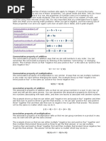 There are three basic properties of numbers, and your textbook will probably have just a little section on these properties, somewhere near the beginning of the course, and then you'll probably never see them again (until the beginning of the next course). y impression is that covering these properties is a holdover from the !"ew ath! fiasco of the #$%&s. 'hile the topic will start to become relevant in matrix algebra and calculus (and become ama(ingly important in advanced math, a couple years after calculus), they really don't matter a whole lot now. 'hy not) *ecause every math system you've ever worked with has obeyed these properties+ ,ou have never dealt with a system where ab did not in fact e-ual ba, for instance, or where (ab)c did not e-ual a(bc). 'hich is why the properties probably seem somewhat pointless to you. .on't worry about their !relevance! for now/ just make sure you can keep the properties straight so you can pass the next test. The lesson below explains how 0 kept track of the properties.