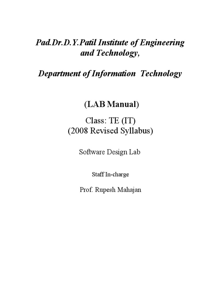 Patil Institute of Engineering and Technology, Department of Information Technology (LAB Manual) Class: TE (IT) (2008 Revised Syllabus)