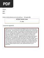 too long for many of the students and they were becoming disengaged. If I teach this lesson again, I will think of a way to give instructions that does not take as long. 3. Describe your strategies for eliciting student thinking. How successful were they? After asking students how many shapes fill another shape, I called on a student and asked How do you know? This was successful in eliciting students metacognition, because it prompted them to explain and/or demonstrate their thinking. 4. Describe your lesson closure. What did it look like? How does this inform your planning as you move forward? The closure consisted of showing students examples of ways they filled the shape. Sadly, many of the students were not engaged. We typically do not have a whole group closure, so we probably need to practice and set expectations for that routine. This content was not very good for showing different examples and discussing them. If there was one in particular that students struggled with, that would have been better to show and share strategies than to show four correct examples. Materials and Lesson Organization 1. Describe your organization and management of materials. What evidence did you see that you were prepared and organized, and had all the materials you needed to teach the lesson? Would you make any changes and what would they be? Adjusting the technology did not happen as fast as I would have liked. Most of the time, students are good about staying calm and being ready to listen and learn as the projector warms up. I also could have planned a short activity for students to do, such as a song or a game (e.g. I Spy). Planned well, this time does not need to be wasted. I would have like to be better organized for the closure. I did not have much time to plan which pieces of student work to display as examples. Next lesson, I will be more aware of looking for examples for this section of the lesson. 2. Describe the transitioning of children during the lesson. Would you make any changes and what would they be? The transition from direct instruction to work time went well. As it was happening, it felt a little chaotic, because at the end, several students crowded around me, which is always difficult to navigate. On the video, it was a fairly smooth transition. It worked well to have the manipulatives in the trays and hand out trays and worksheets to two table members. This kept the flow going around me and around the pencil station. Oftentimes, this area gets clogged during transitions. Clean up took longer than I would have liked. Since students know the routine when the clean up song is played, I will try to play that song or another next time during clean up.