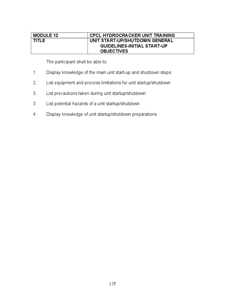 CPCL HYDROCRACKER UNIT TRAINING UNIT START-UP/SHUTDOWN GENERAL GUIDELINES-INITIAL START-UP OBJECTIVES