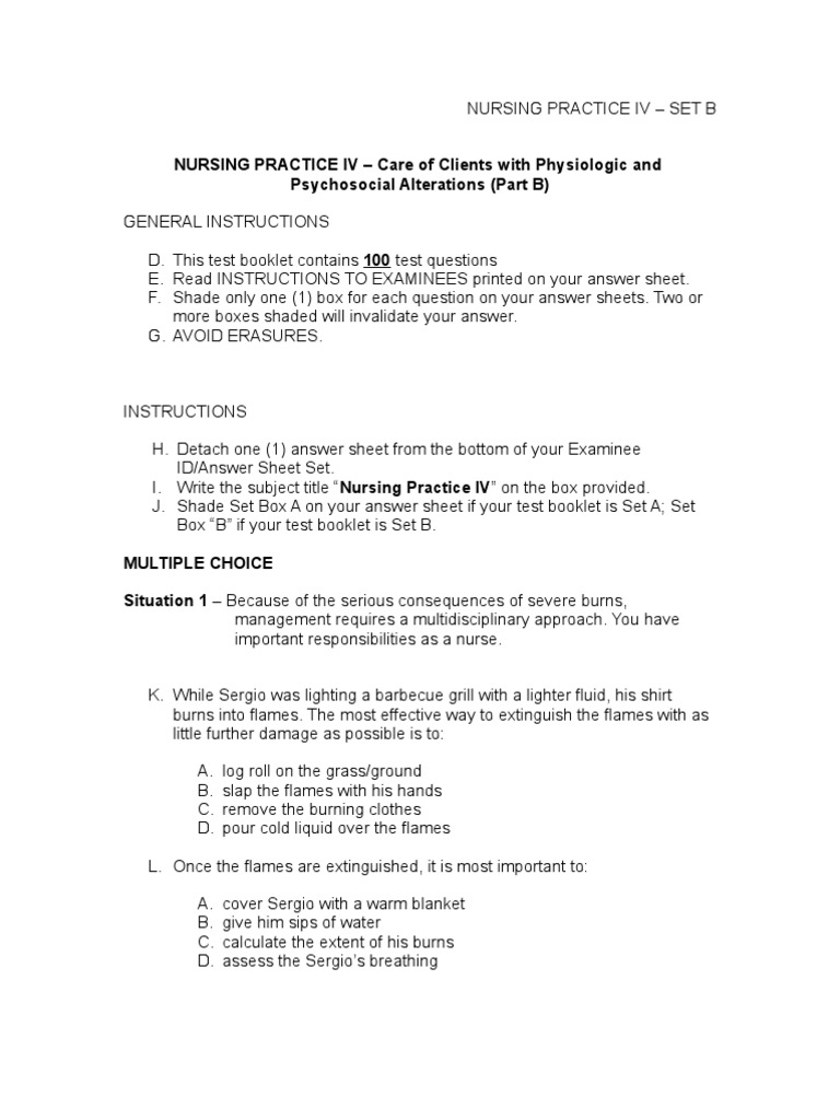 NURSING PRACTICE IV – Care of Clients with Physiologic and