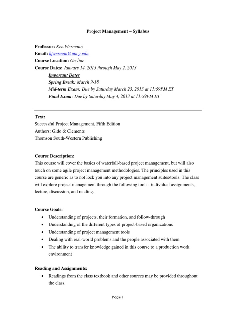 Project Management Syllabus Professor: Ken Wermann Email: kjwerman@uncg.