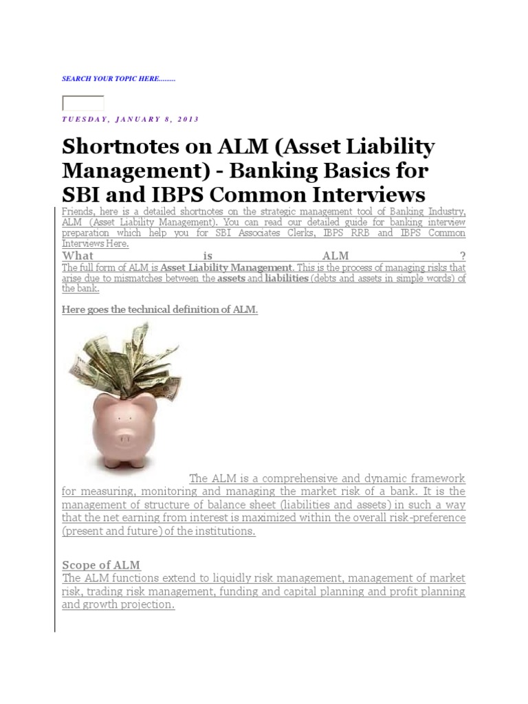 Shortnotes on ALM (Asset Liability Management) - Banking Basics for SBI and IBPS Common Interviews