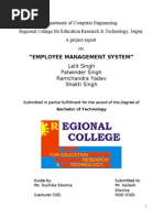PRO LEM DE#INATION The project is based on the Emp$'yee management system. *n a manual working with in the organi!ation the records related to employees like employee 0ame, Date of Joining etc are kept in a old files and salary details of each employee within the organi!ation were calculated and processed manually by a clerks in the departments. *n this manual system salary details for each employee should be prepared at the end of each month, this was a quite time consuming job for clerk to process and calculate salary details for each employee with in the organi!ation. Sometime it may also happen that these salary details produced manually is error+prone. To reduce the above mentioned problem with in the current e'isting system, the project is developed to replace it with the computeri!ed automatic one, after the current system gets computeri!ed the salary details and other details related to a particular employee in stored in the database of the system so that one can get details later when needed.