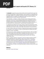 *espite significant variations in cost, si:e, and capabilities, modern computers resemble one another in many basic ways" 1ssentially, most consist of the following components: <ain memory .econdary memory, which includes storage devices such as hard disks, C*s, *D*s, and flash drives C Central processing unit C &nput devices, such as keyboards, mouses, touch pads, scanners, %oysticks C ?utput devices, such as monitors, printers, and speakers