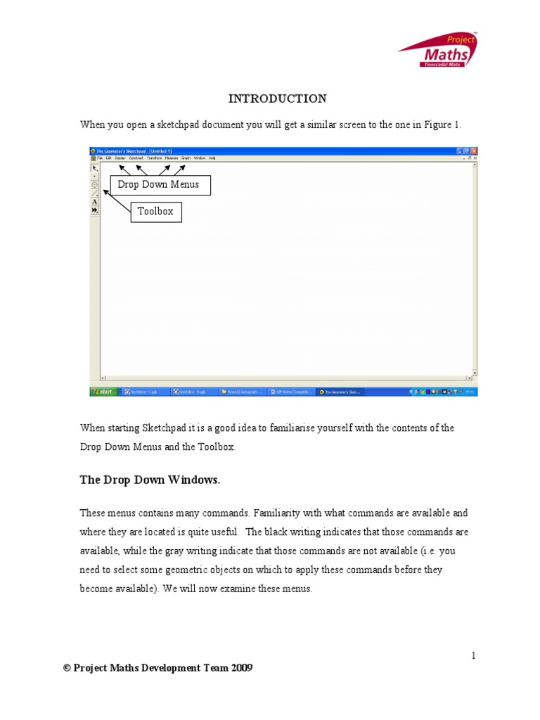 When starting Sketchpad it is a good idea to familiarise yourself with the contents of the Drop Down Menus and the Toolbox.