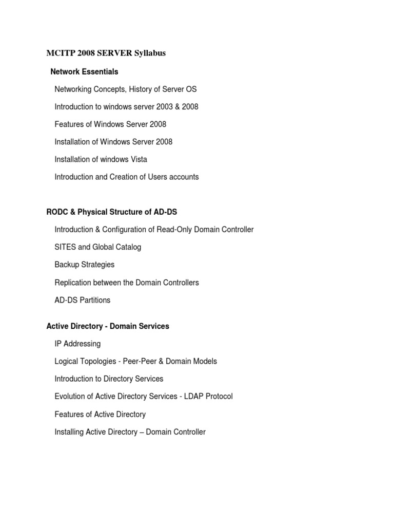 MCITP Syllabus