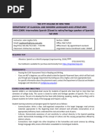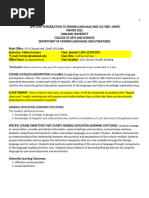 COURSE DESCRIPTION SPAN 115 is a three-credit semester program for beginning students of Spanish who have studied the language before, and it starts the basic language requirements for most majors in CHSS and COS. This course is designed to help students develop basic listening, speaking, reading and writing skills in Spanish and to provide them with an introduction to the various cultures of the Spanish-speaking world. In this course, students will: 1. 2. 3. 4. 5. synthesize the acquired vocabulary and sentence structures to broaden oral and written comprehension; strengthen their ability to express ideas orally and in writing with an appropriate level of grammatical accuracy and fluency focusing on both presentational and interpersonal modes of communication; demonstrate a certain level of knowledge and critical understanding of the products, practices and perspectives of the Spanish-speaking world; understand speech used by native speakers; Increase their ability to find resources, information and other tools to continue the study of the language.