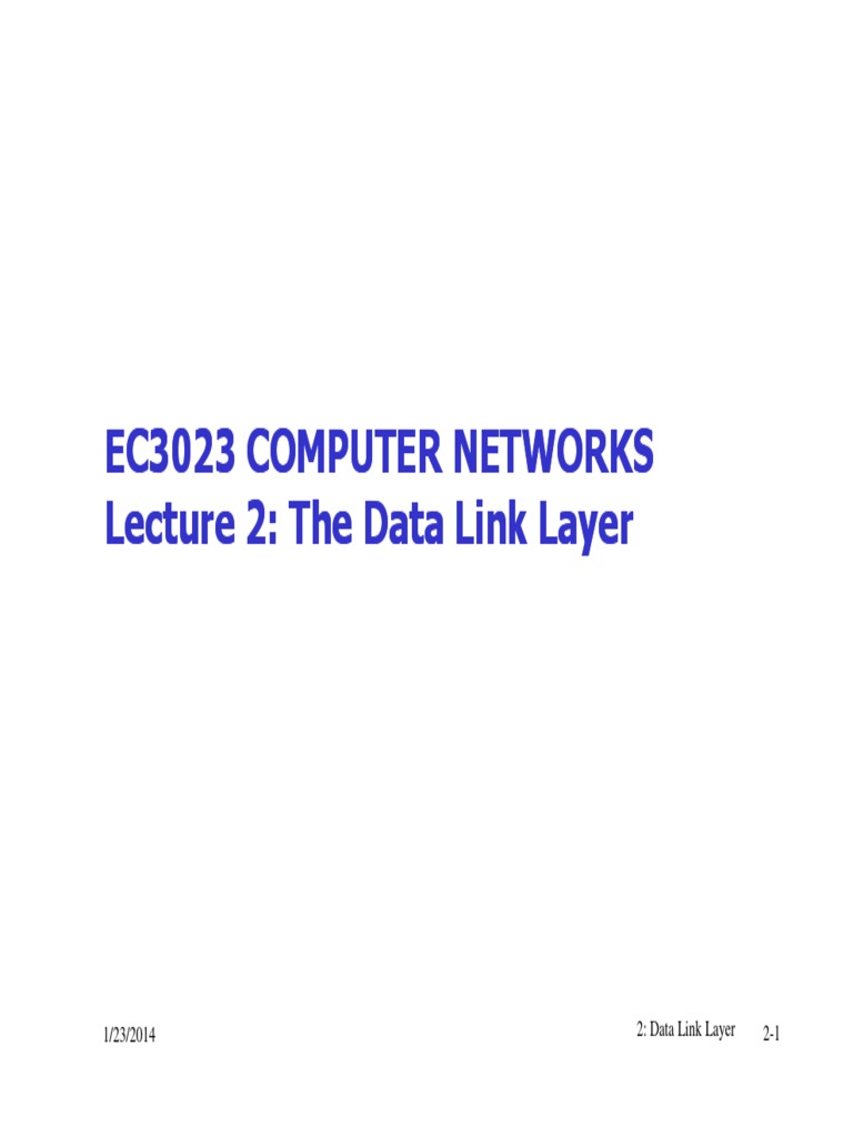 EC3023 COMPUTER NETWORKS Lecture 2: The Data Link Layer