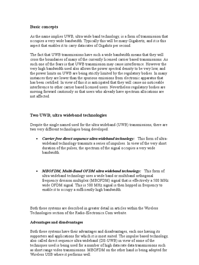 • MBOFDM, Multi-Band OFDM ultra wideband technology: This form of